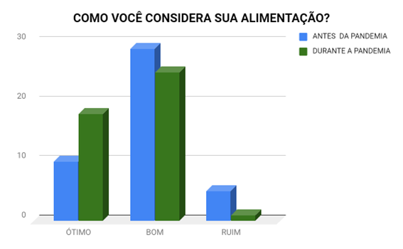 A entrevista foi realizada no dia 22 de setembro e mostra que com essa mudança de rotina, a maior parte da população passou a se alimentar melhor, comer alimentos feitos em casa e diminuiu o consumo de alimentos prontos. Silvette Gonzalez, (60 anos), que vive em São Paulo, conta que antes da pandemia durante a semana, por diversas vezes ela e sua família se alimentavam de comida pronta: “ Antes da pandemia, a gente comia mais alimentos prontos,e depois que tudo começou passamos a fazer a comida em casa, mais vezes para nos protegermos.”