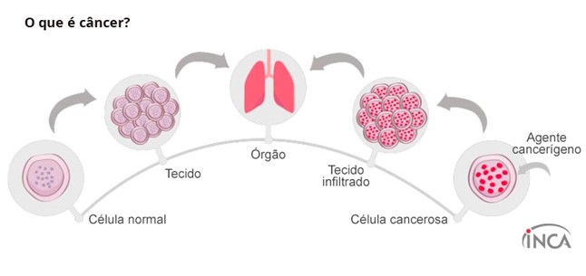 Câncer é o nome dado a um conjunto de mais de 100 doenças que têm em comum o crescimento desordenado de células, que invadem tecidos e órgãos. Dividindo-se rapidamente, estas células tendem a ser muito agressivas e incontroláveis, determinando a formação de tumores, que podem espalhar-se para outras regiões do corpo. Os diferentes tipos de câncer correspondem aos vários tipos de células do corpo. Quando começam em tecidos epiteliais, como pele ou mucosas, são denominados carcinomas. Se o ponto de partida são os tecidos conjuntivos, como osso, músculo ou cartilagem, são chamados sarcomas.