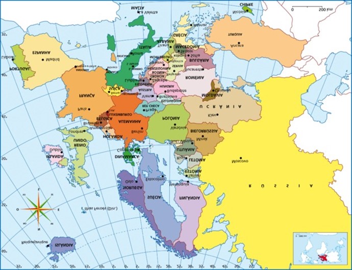A Europa é formada por 50 países. Há grande diversidade entre os tamanhos de cada um e podermos encontrar os pequenos Vaticano (0,44 km2), Mônaco (0,44 km2), San Marino (61,2 km2), Liechtenstein (160 km2) e o Principado de Andorra (468 km2).