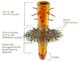 Responsável pela fixação dos vegetais e pela absorção de água e sais minerais. De maneira geral, considera-se que o sistema radicular é o responsável por realizar a interface entre a planta e solo.