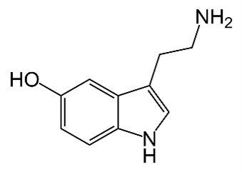 Substância amina (C10H12N2O) encontrada em tecidos humanos e animais, especialmente no cérebro e nas mucosas gástricas, que desempenha importante função fisiológica como neurotransmissor, vasoconstritor e regulador da atividade dos músculos lisos; hidroxitriptamina.