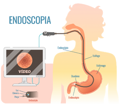 A endoscopia é um exame capaz de analisar a mucosa do esôfago, estômago e duodeno (primeira parte do intestino delgado). É feita através de um tubo flexível (conhecido por endoscópio), que possui um chip responsável por capturar as imagens do sistema digestivo através de uma câmera.