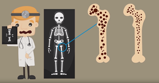 La osteoporosis es una enfermedad de los huesos en la que se reduce la densidad ósea. Como resultado, los huesos se vuelven más porosos, aumenta el número y tamaño de las cavidades o células presentes en ellos, son más frágiles, su capacidad para resistir los golpes es más débil y se rompen con mayor facilidad.